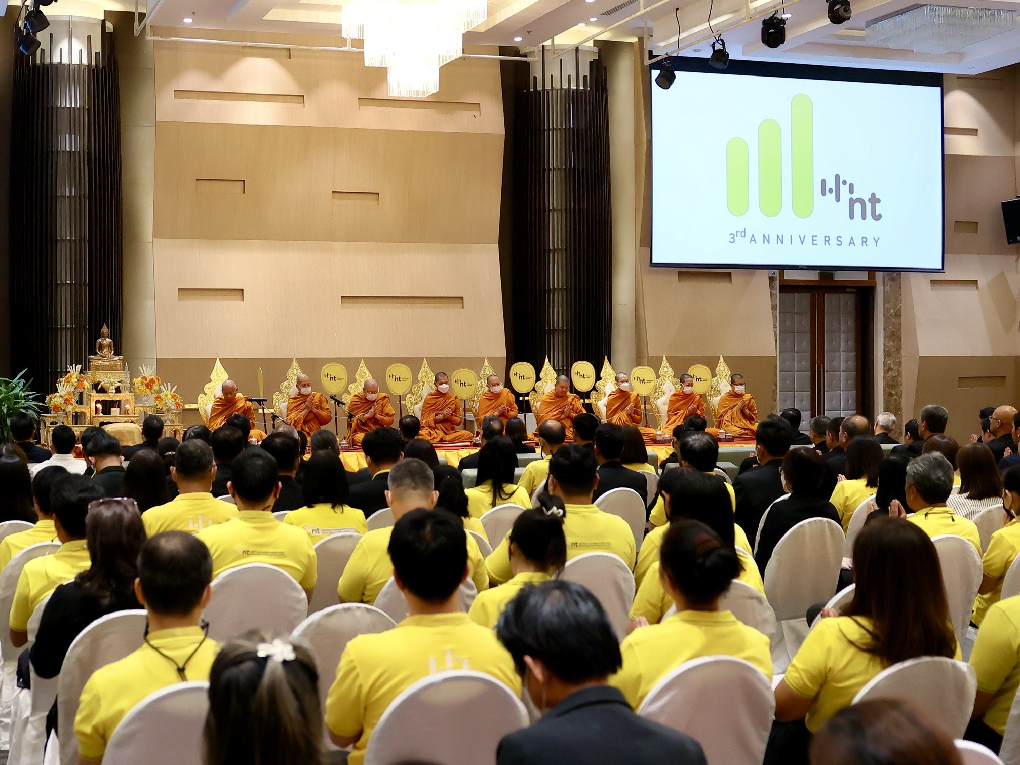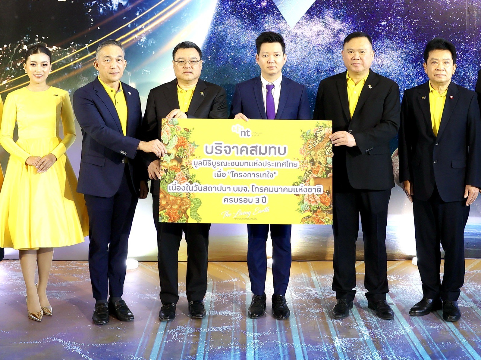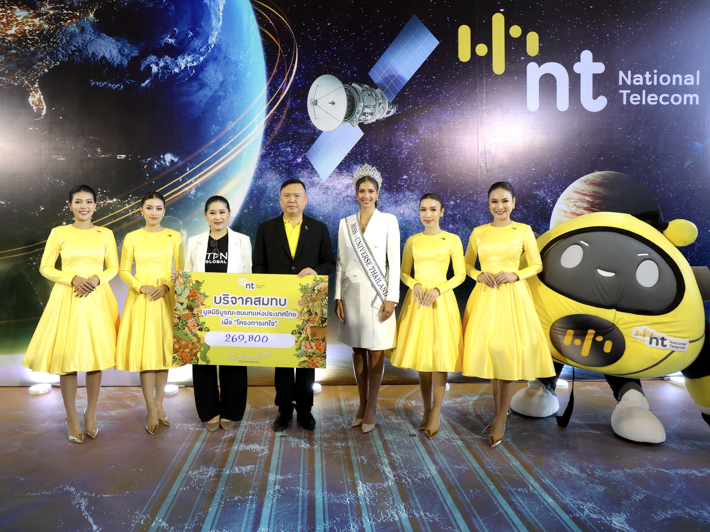 ในทุกปี NT ได้แสดงเจตนารมณ์ในการงดรับกระเช้าแสดงความยินดี แต่เปิดรับบริจาคทุนทรัพย์ เพื่อนำไปสมทบทุนส่งมอบให้แก่องค์กรการกุศล หรือ องค์กรที่ดำเนินงานด้านสาธารณะประโยชน์ต่าง ๆ และเนื่องในโอกาสครบรอบ 3 ปี ทาง NT ได้บริจาคสมทบทุนให้แก่มูลนิธิบูรณะชนบทแห่งประเทศไทยฯ นำไปใช้ในโครงการ “อนุรักษ์เต่าทะเลที่อยู่ในสภาวะใกล้สูญพันธุ์” โดยมี นางสาวแอนโทเนีย โพซิ้ว รองอันดับ 1 มิสยูนิเวิร์ส เข้าร่วมแสดงความยินดีและเป็นตัวแทน ส่งมอบเงินสมทบทุน จำนวน 269,800 บาท (สองแสนหกหมื่นเก้าพันแปดร้อยบ้าน) มอบให้กับ มูลนิธิบูรณะชนบทแห่งประเทศไทยฯ ต่อไป