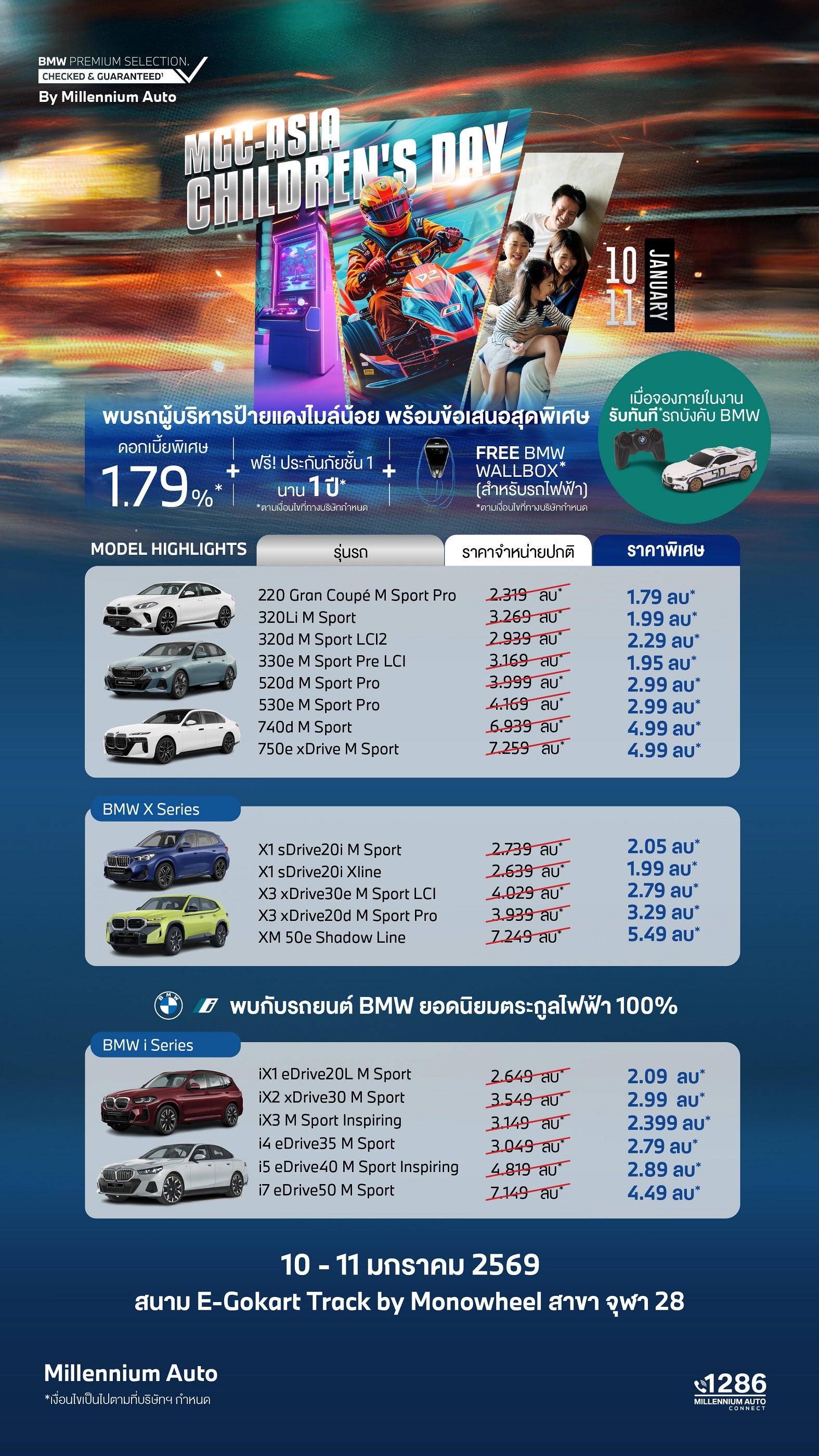 ผู้ร่วมงาน MGC-ASIA Children’s Day 2026 สามารถรับสิทธิพิเศษสำหรับยนตรกรรมจาก 5 แบรนด์ชั้นนำในเครือฯ ได้แก่ บีเอ็มดับเบิลยู, มินิ, ฮอนด้า, เอ็กซ์เผิง และ ซีเคอร์ อาทิ ข้อเสนอด้านการเงิน โปรแกรมดูแลหลังการขาย ประกันภัย และสิทธิประโยชน์พิเศษเฉพาะภายในงาน โดยมีรายละเอียดดังนี้