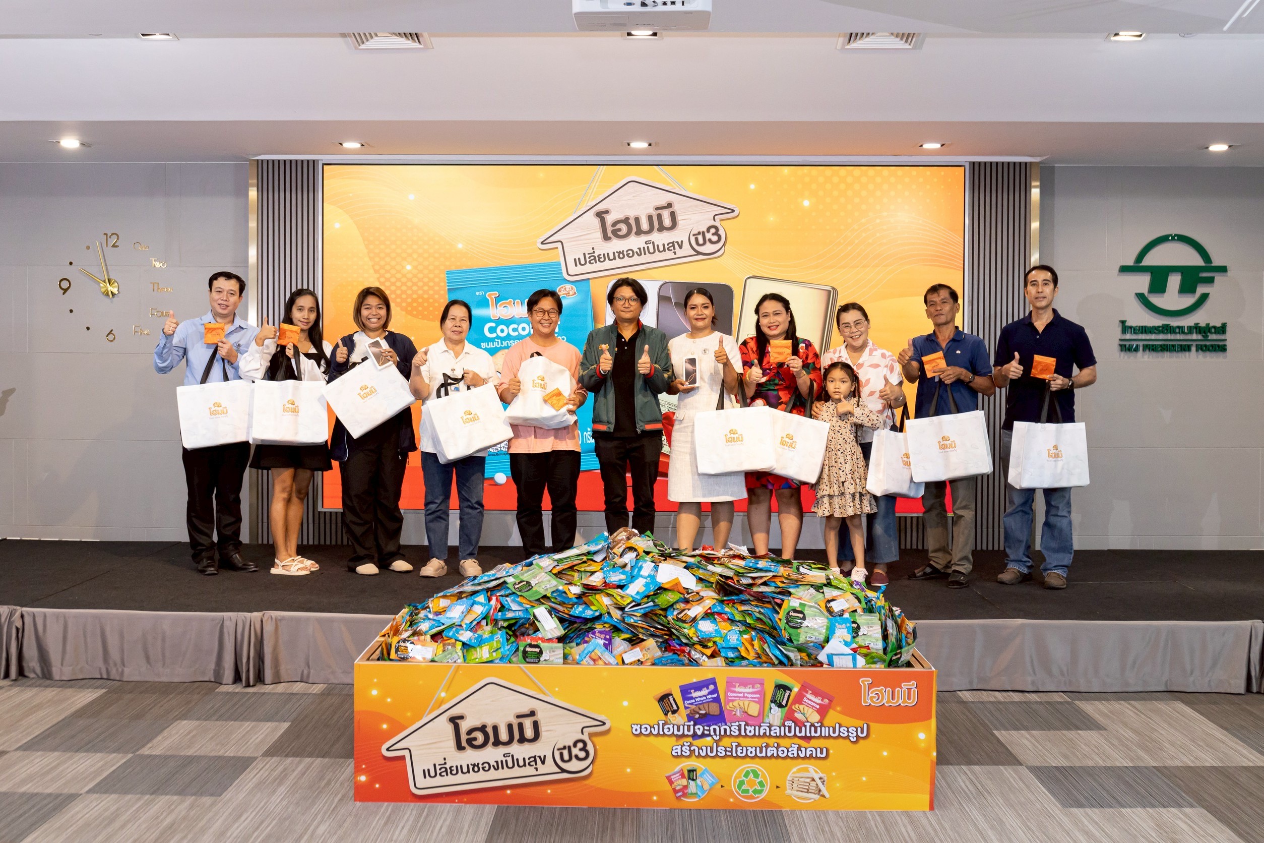 คุณพันธ์ พะเนียงเวทย์ ผู้จัดการใหญ่ บริษัท ไทยเพรซิเดนท์ฟูดส์ จำกัด (มหาชน) มอบรางวัลให้กับ ผู้โชคดีในแคมเปญ "โฮมมี เปลี่ยนซองเป็นสุข ปี 3" ครั้งที่ 1 รางวัลที่ 1 โทรศัพท์สมาร์ทโฟน iPhone 16 Pro ความจุ 256 GB จำนวน 2 รางวัล มูลค่ารางวัลละ 43,900 บาท รางวัลที่ 2 ทองคำแท่ง หนัก 1 สลึง จำนวน 10 รางวัล มูลค่ารางวัลละ 13,800 บาท พร้อมเชิญชวนร่วมส่งซอง “โฮมมี” เปลี่ยนซองเป็นความสุข ลุ้นรางวัลใหญ่ทองคำแท่ง 1 บาท และรางวัลอื่นๆ อีกมากมายตั้งแต่วันนี้ – 15 ธ.ค. 2568 มูลค่าของรางวัลตลอดโครงการกว่า 500,000 บาท ทุกซองที่ส่งจะถูกนำไปรีไซเคิลเป็นไม้แปรรูป เพื่อสร้างประโยชน์ให้กับสังคมต่อไป ณ บริษัท ไทยเพรซิเดนท์ฟูดส์ จำกัด (มหาชน) เมื่อเร็วๆนี้ ติดตามรายละเอียดเพิ่มเติมได้ที่ Facebook : Homey Club www.facebook.com/share/p/19zWAioeZw/