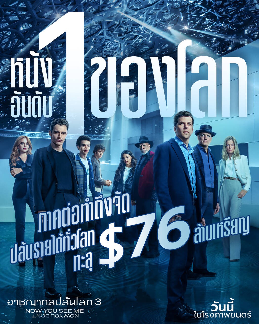 เปิดตัวแรงขึ้นแท่น “หนังอันดับ 1 ของโลก” สมฐานะภาพยนตร์อาชญากรรมมายากลที่หลายคนรอคอยมานานหลายปีกับ “Now You See Me: Now You Don’t อาชญากลปล้นโลก 3” ที่กวาดรายได้ถล่มบ็อกซ์ออฟฟิศทั่วโลกไปแล้วกว่า 76 ล้านดอลลาร์สหรัฐ ซึ่งรายได้ส่วนใหญ่มาจากตลาดต่างประเทศที่สามารถกวาดรายได้ไปสูงถึง 54.2 ล้านดอลลาร์สหรัฐ