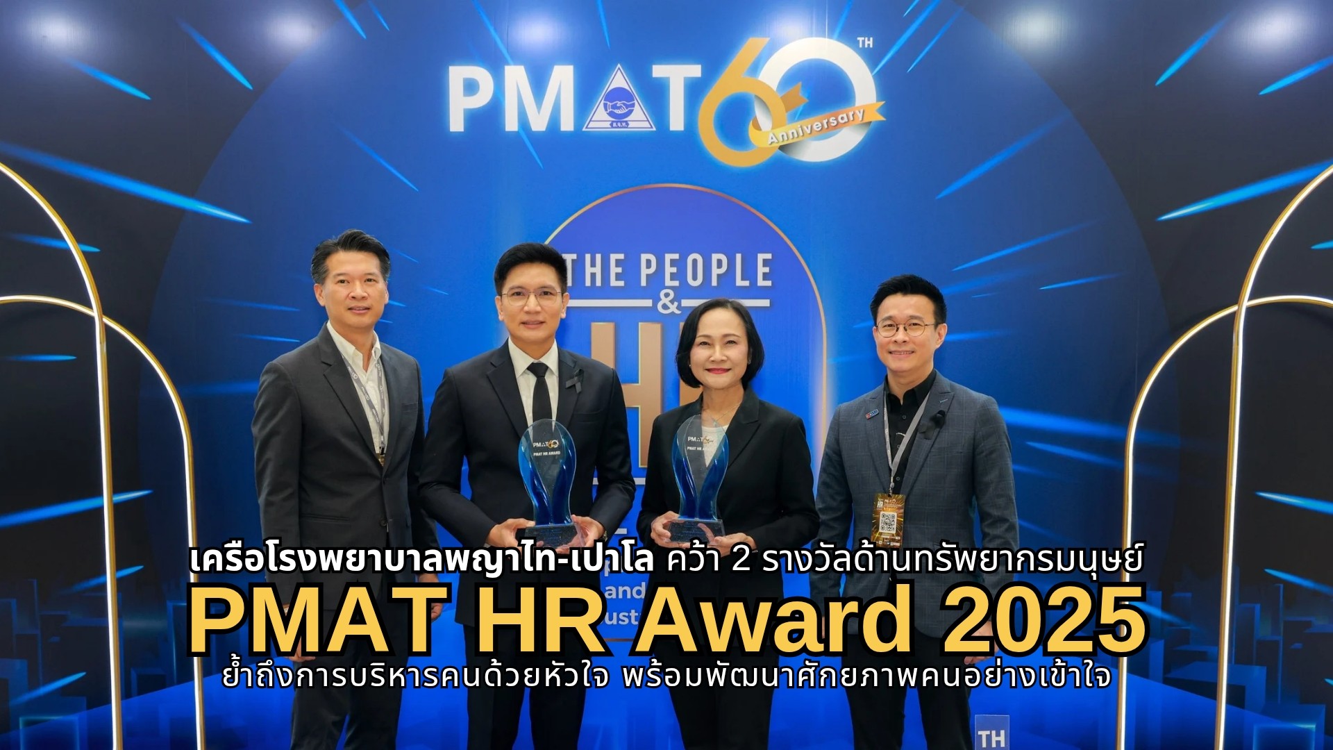 เครือโรงพยาบาลพญาไท-เปาโลสร้างชื่อบนเวทีด้านทรัพยากรมนุษย์ ด้วยการคว้า 2 รางวัลอันทรงคุณค่าจากสมาคมการจัดการงานบุคคลแห่งประเทศไทย (PMAT) ภายในงาน “HR Day 2025 - PMAT 60th International HR Conference” ณ ศูนย์การประชุมแห่งชาติสิริกิติ์ เมื่อวันที่ 12 พฤศจิกายน 2568 ที่ผ่านมา อันประกอบด้วย;