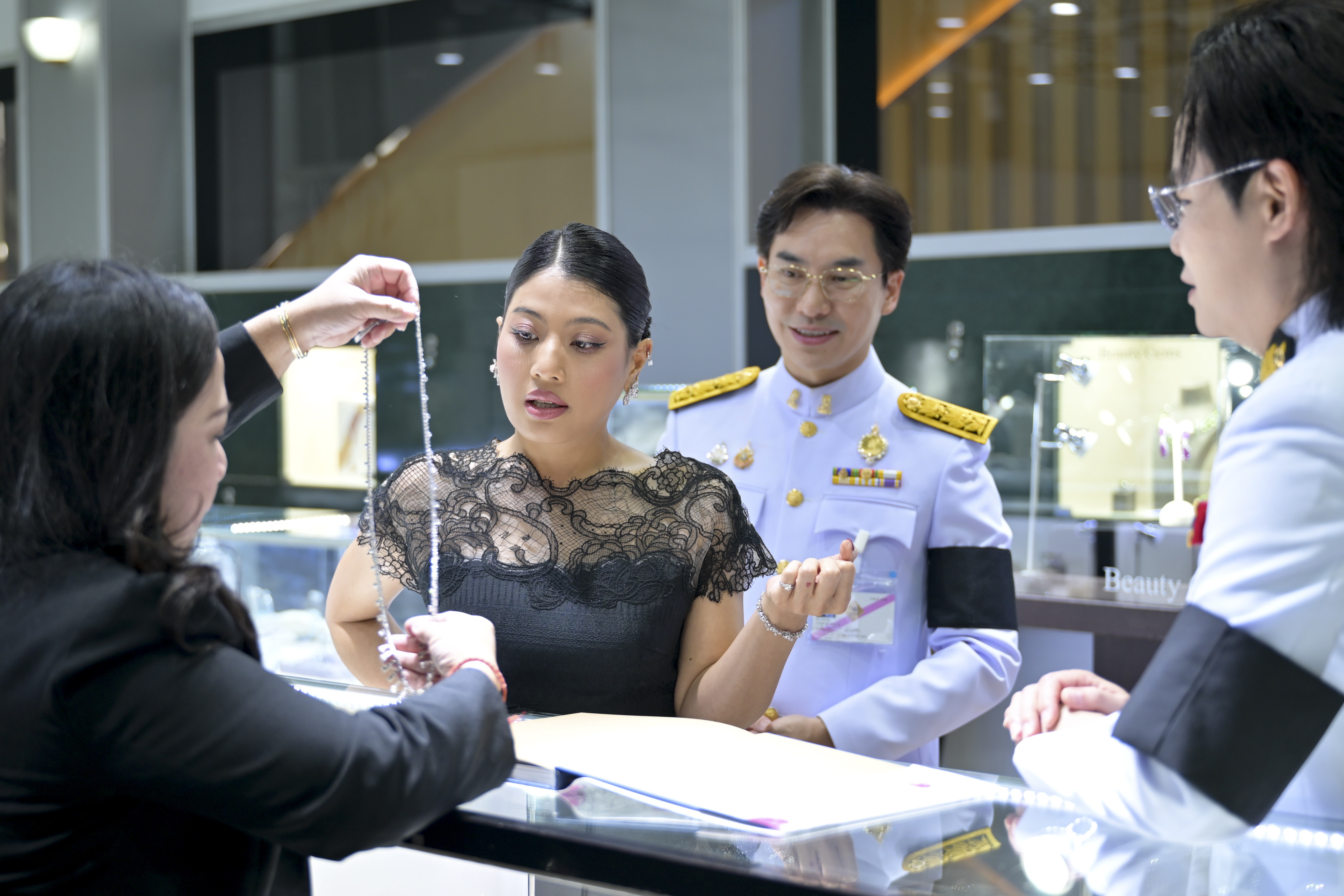 ในโอกาสนี้ สมเด็จพระเจ้าลูกเธอ เจ้าฟ้าสิริวัณณวรี นารีรัตนราชกัญญา ทรงตัดแถบแพรเปิดงานแสดงสินค้าอัญมณีและเครื่องประดับครั้งที่ 73 และทอดพระเนตรนิทรรศการ ‘TREASURE OF DREAMS’ SIRIVANNAVARI X BEAUTY GEMS ซึ่งเป็นการจัดแสดงคอลเลกชั่นจิวเวลรี่ชั้นสูง ทรงออกแบบโดยสมเด็จพระเจ้าลูกเธอ เจ้าฟ้าสิริวัณณวรี นารีรัตนราชกัญญา และสร้างสรรค์โดยช่างฝีมือชั้นสูงของไทย สะท้อนพระปณิธานในการสานต่อพระราชดำริของสมเด็จพระนางเจ้าสิริกิติ์ พระบรมราชินีนาถ พระบรมราชชนนีพันปีหลวง ในการอนุรักษ์และต่อยอดภูมิปัญญางานหัตถศิลป์ไทย เพื่อส่งเสริมอุตสาหกรรมอัญมณีและเครื่องประดับไทยสู่สากล
