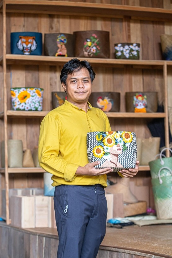 ด้าน นายมนัทพงศ์ เซ่งฮวด ทายาทช่างศิลปหัตถกรรม ประเภทเครื่องจักสาน ปี 2557 ของ SACIT