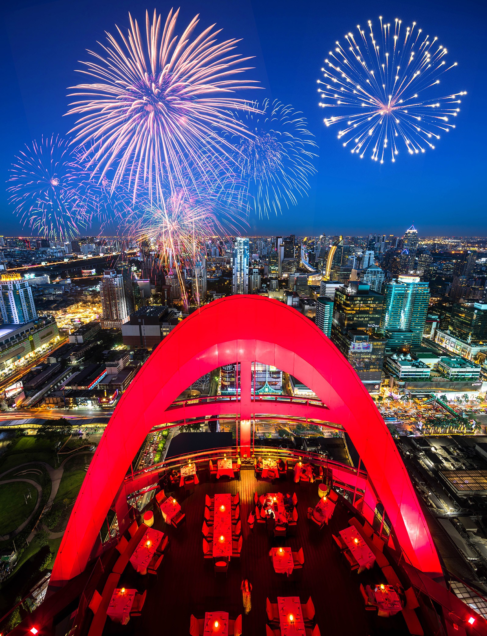End the year with a bang 55 floors above the city at Centara Grand at CentralWorld. Indulge in an exquisite eight-course gala dinner at Red Sky Restaurant, paired with panoramic views of Bangkok, live entertainment and a DJ to keep you dancing all through the night. Our executive chefs, Andrea Montella and Luca Russo, have curated a sumptuous feast using premium ingredients flown in from all over the world, including Maine lobster, White truffles, and Hitachi Wagyu. After the fantastic feast, wait for the clock to strike 12 and watch the spectacular fireworks display light up the night sky as you raise a toast to the new year.